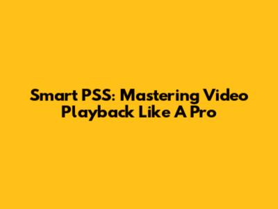 Smart PSS: Mastering Video Playback Like A Pro