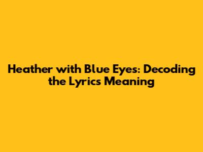 Hey everyone! Today, let's dive deep into the lyrics of the song "Heather with Blue Eyes." We'll explore what the song is all about, break down its meaning line by line, and try to understand the emotions and story it conveys. So, grab your headphones, and let's get started!
