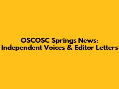 OSCOSC Springs News: Independent Voices & Editor Letters