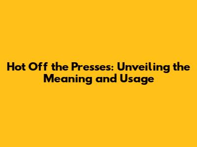 What Does "Hot Off the Presses" Actually Mean?**