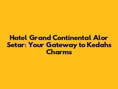 Hey guys! Planning a trip to Alor Setar and wondering where to crash? Look no further than the Hotel Grand Continental Alor Setar. It's a popular choice for both leisure and business travelers, and for good reason. This guide will give you the lowdown on everything you need to know, from the hotel's awesome amenities to its sweet location, and why it's a solid pick for your stay in the rice bowl of Malaysia. Let's dive in!
