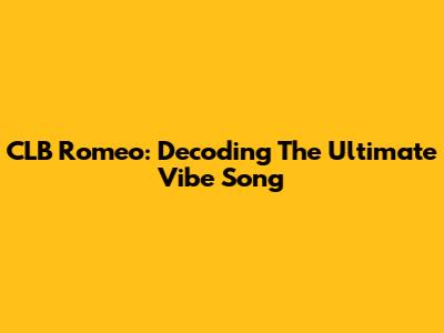CLB Romeo: Decoding The Ultimate Vibe Song
