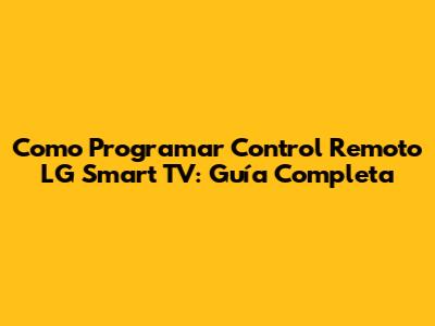 Como Programar Control Remoto LG Smart TV: Guía Completa