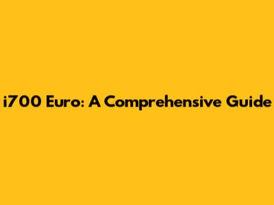 Understanding the i700 Euro: What is it All About?