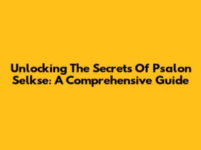 Unlocking The Secrets Of Psalon Selkse: A Comprehensive Guide