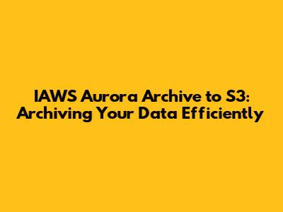 Alright guys, let's dive into how you can efficiently archive your IAWS (don't worry too much about what it stands for right now, just think of it as your database stuff) Aurora data to S3. If you're running databases on Aurora, you know how critical it is to keep things tidy, organized, and backed up. Archiving to S3 is a fantastic way to do just that – it's cost-effective, scalable, and keeps your data safe and sound. This comprehensive guide will walk you through the ins and outs of setting up this process, ensuring your historical data is readily available when you need it without bogging down your active databases. So, buckle up, and let’s get started!