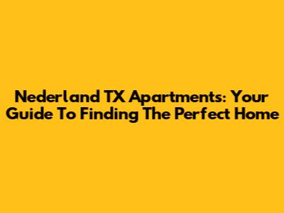 Nederland TX Apartments: Your Guide To Finding The Perfect Home
