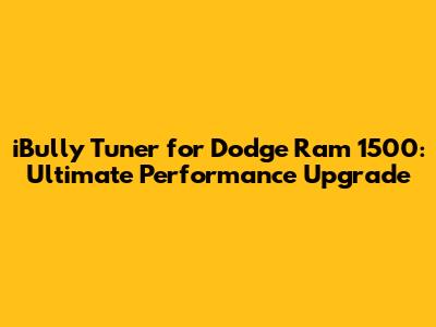 Hey guys! Are you looking to seriously upgrade the performance of your Dodge Ram 1500? Then you've probably heard about the iBully tuner. This little device promises to unleash hidden power and improve your truck's overall driving experience. In this article, we're diving deep into the iBully tuner for the Dodge Ram 1500, exploring its features, benefits, and whether it's the right choice for your needs. We'll cover everything from installation to performance gains, so buckle up and get ready to learn how to take your Ram 1500 to the next level!