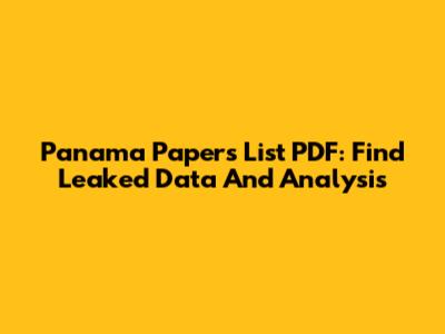 Panama Papers List PDF: Find Leaked Data And Analysis
