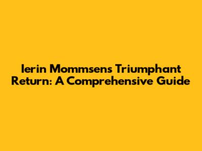 Hey everyone! Are you ready to dive into the exciting world of Ierin Mommsen's comeback? If you're a fan, you know this is huge news! This guide will cover everything you need to know about the amazing journey back of Ierin Mommsen. We'll explore her life, career highlights, the setbacks she faced, and the incredible story of her return. Get ready for an inspiring ride! This article is all about Ierin Mommsen’s incredible return, and we're going to cover everything from her early life and career highlights to the challenges she overcame and the strategies she employed to make her triumphant comeback. You know, Mommsen is such a unique individual, and we're going to cover all aspects. We will dive deep into her comeback, which has been nothing short of inspiring. It's a story of resilience, determination, and the unwavering pursuit of passion. So, buckle up, and let's get started on this exciting journey! We'll explore her life, career highlights, the setbacks she faced, and the incredible story of her return. Let's make this article super informative and engaging for all you wonderful people. This is for all the Mommsen fans out there, and for anyone who loves a great comeback story! We'll cover everything from her early life and career to the strategies she employed to make her triumphant comeback. Get ready to be inspired! We're here to celebrate Ierin's return and to learn from her incredible journey. It's a testament to the human spirit's ability to overcome obstacles and to achieve greatness. So, let's jump right into the details of this amazing story. We're going to look into every aspect of her life and comeback, starting with her background and career highlights. We'll examine her challenges and how she overcame them. We're here to explore every facet of Ierin's inspiring story. You'll learn about her early life, career highlights, setbacks, and triumphant return.