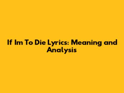 Exploring the Depths of "If I'm To Die"