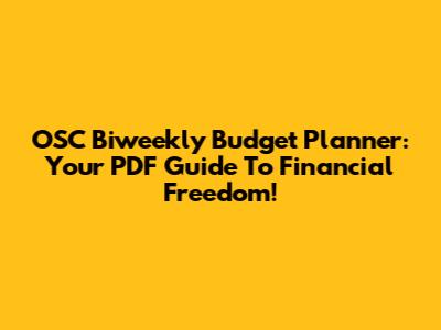 OSC Biweekly Budget Planner: Your PDF Guide To Financial Freedom!