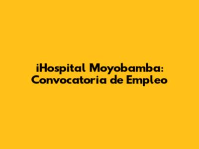 Detalles de la Convocatoria iHospital Moyobamba: Puestos y Requisitos