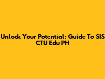 Unlock Your Potential: Guide To SIS CTU Edu PH