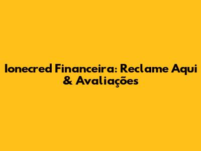 Ionecred Financeira: Reclame Aqui & Avaliações