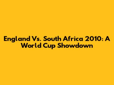 England Vs. South Africa 2010: A World Cup Showdown