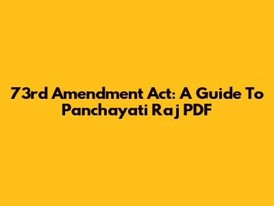 73rd Amendment Act: A Guide To Panchayati Raj PDF