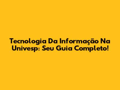 Tecnologia Da Informação Na Univesp: Seu Guia Completo!
