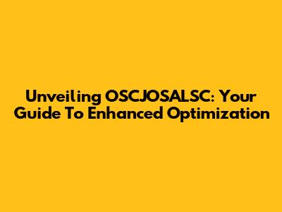 Unveiling OSCJOSALSC: Your Guide To Enhanced Optimization