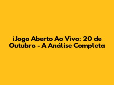Prepare-se, porque no iJogo Aberto ao vivo dia 20 de outubro teremos análises dos jogos mais importantes do momento! Nossa equipe de especialistas vai destrinchar as partidas, com foco nas táticas, nos jogadores e nos momentos decisivos. Vocês terão acesso a informações detalhadas, opiniões embasadas e muita emoção. Não perca as análises dos jogos, que são sempre um dos pontos altos do nosso programa. Além das análises, teremos também debates acalorados sobre os resultados, as polêmicas e as expectativas para os próximos jogos. Acreditamos que o debate é fundamental para o crescimento do futebol, e por isso, valorizamos a participação de todos os nossos espectadores. Preparem-se para torcer, debater e se divertir com a gente! Nossa equipe está preparando tudo com muito carinho para levar a vocês o melhor do futebol, com a qualidade e a credibilidade que vocês já conhecem. Contamos com a presença de todos vocês para fazermos juntos um dia memorável. A expectativa é grande e a torcida, maior ainda. Não deixem de acompanhar nossas redes sociais para ficar por dentro de tudo o que vai rolar no dia 20 de outubro. Preparem-se para um dia de muita emoção e futebol de alta qualidade. Não percam a oportunidade de fazer parte dessa festa! Esperamos por vocês!
