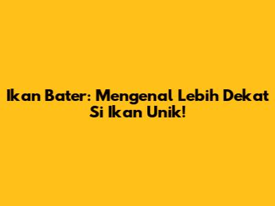Guys, pernah denger tentang ikan bater? Atau mungkin malah baru pertama kali ini? Nah, pas banget! Di artikel ini, kita bakal ngobrolin semua hal tentang ikan yang satu ini. Mulai dari penampilannya yang unik, habitatnya, sampai fakta-fakta menarik yang mungkin belum kamu tahu. Jadi, siap-siap ya buat menambah wawasan tentang keanekaragaman hayati Indonesia!