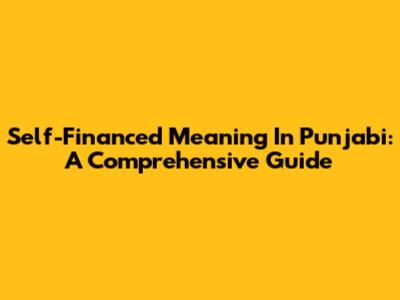 Self-Financed Meaning In Punjabi: A Comprehensive Guide