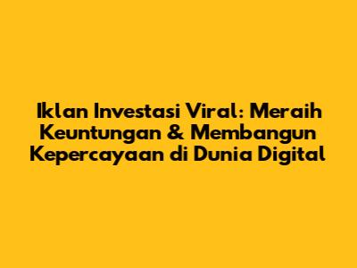 Hai guys! Kalian pasti sering banget kan lihat iklan investasi viral berseliweran di media sosial? Atau mungkin malah penasaran, gimana sih caranya bikin iklan investasi yang beneran nendang dan bikin orang tertarik buat investasi? Nah, artikel ini bakal ngebahas tuntas tentang dunia iklan investasi viral, mulai dari strategi pemasaran yang jitu, tips-tips investasi yang oke punya, hingga contoh-contoh iklan yang sukses. Yuk, simak!