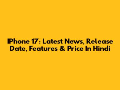 IPhone 17: Latest News, Release Date, Features & Price In Hindi