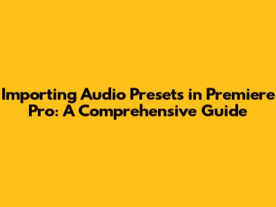 Hey everyone! Are you ready to level up your audio game in Adobe Premiere Pro? One super handy way to streamline your workflow and achieve professional-sounding results is by importing audio presets. This guide will walk you through everything you need to know about importing audio presets in Premiere Pro, from the basics to some cool advanced tips. So, let’s dive in, shall we?