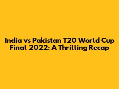 Hey guys, let's dive into the India vs Pakistan T20 World Cup Final 2022, a match that had us all on the edge of our seats! This wasn't just any game; it was a clash of titans, a battle between two cricketing giants, and a moment that will be etched in the memories of fans for years to come. The atmosphere was electric, the tension palpable, and the stakes were higher than ever. It was more than just a cricket match; it was a cultural phenomenon, a spectacle that united and divided fans across the globe. We're going to break down the key moments, the heroes, the nail-biting finishes, and everything else that made this final such an unforgettable event. Get ready to relive the excitement, the drama, and the pure cricketing brilliance that defined this epic encounter. Let's get started!