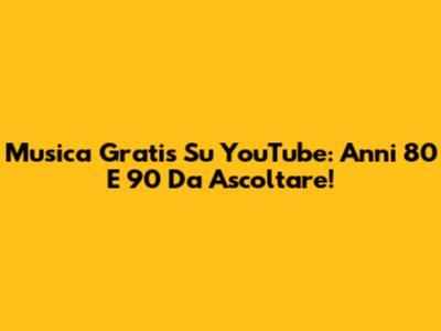 Musica Gratis Su YouTube: Anni '80 E '90 Da Ascoltare!