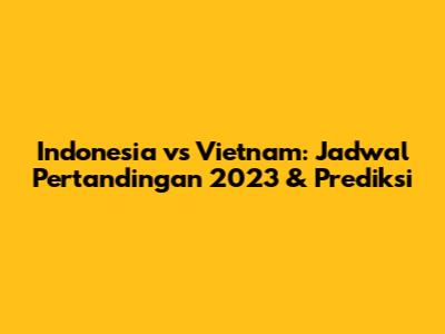Jadwal Indonesia vs Vietnam 2023 sangat dinantikan oleh para penggemar sepak bola. Berikut adalah informasi lengkap mengenai jadwal pertandingan antara kedua tim, termasuk tanggal, waktu, dan lokasi pertandingan. Jadwal ini dapat berubah sewaktu-waktu, jadi pastikan untuk selalu memantau informasi terbaru dari sumber resmi.