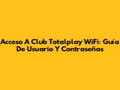Acceso A Club Totalplay WiFi: Guía De Usuario Y Contraseñas