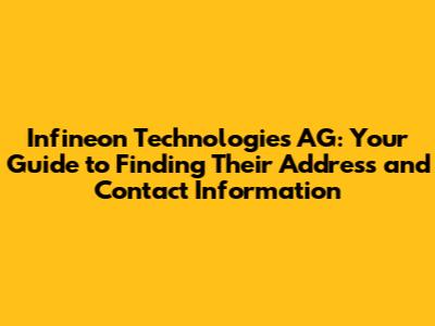 Hey guys! Are you trying to get in touch with Infineon Technologies AG but struggling to find the right address or contact details? Don't worry; you're not alone! Navigating the corporate world can sometimes feel like a maze, but I'm here to help you cut through the confusion. In this article, we'll break down everything you need to know to locate Infineon's headquarters, regional offices, and how to contact them for various inquiries. Whether you're a potential investor, a student researching the company, or a professional looking to collaborate, having the correct contact information is crucial. So, let's dive in and get you connected!