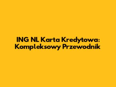 Czym Jest ING NL Karta Kredytowa? Podstawowe Informacje