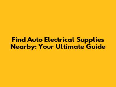 Find Auto Electrical Supplies Nearby: Your Ultimate Guide
