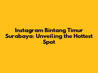 Hey there, Instagram enthusiasts! Are you ready to dive into the vibrant world of Instagram Bintang Timur Surabaya? This buzzing city is a treasure trove of incredible content, from stunning photography and captivating stories to the latest trends and local happenings. If you're looking to explore the digital landscape of Surabaya, you've come to the right place. We're going to break down everything you need to know about the most popular and influential Instagram accounts, the best hashtags to use, and how to make the most of your Instagram experience in this dynamic city. So, grab your phone, get comfortable, and let's jump right in! This guide will be your go-to resource, providing you with all the insider tips and tricks to navigate the exciting world of Instagram Bintang Timur Surabaya. Ready to level up your Instagram game? Let's go!