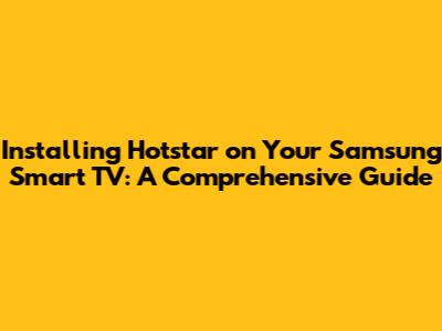 Alright, let's get down to business! Here’s how you can install Hotstar on your Samsung Smart TV. I have broken it down into easy-to-follow steps so that even if you are not a tech guru, you will be able to follow along without issues. First, make sure your Samsung Smart TV is connected to the internet. This is crucial because, without an internet connection, you won’t be able to access the app store and download Hotstar. You can connect your TV to the internet via Wi-Fi or through an Ethernet cable. Wi-Fi is generally more convenient, but an Ethernet cable can provide a more stable and faster connection. To check your internet connection, go to the TV’s settings menu and look for the network settings. From there, you can test your connection and ensure everything is working properly. Once you've confirmed your internet connection, turn on your Samsung Smart TV and navigate to the home screen. This is where all your apps and settings are easily accessible. Use your remote to scroll through the options until you find the “Apps” icon. It usually looks like a collection of small squares or a shopping bag. Click on the “Apps” icon to open the Samsung Apps store. This is where you can find and download various apps for your TV, including Hotstar. In the search bar, type “Hotstar” using the on-screen keyboard. The search bar is usually located at the top of the screen. As you type, suggestions may appear, making it easier to find the app. Once you see Hotstar in the search results, select it. This will take you to the app’s page, where you can find more information about it. On the Hotstar app page, you will see an “Install” button. Click on this button to start the download and installation process. The installation may take a few minutes, depending on your internet speed. Once the installation is complete, you will see an “Open” button. Click on the “Open” button to launch the Hotstar app. The app will then open, and you can start exploring its content library. If you already have a Hotstar account, you can log in using your credentials. If you’re a new user, you can sign up for an account directly through the app. Just follow the on-screen instructions to create your account. And there you have it! Hotstar is now installed on your Samsung Smart TV, and you’re ready to start streaming your favorite content. Enjoy!