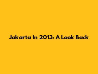 Jakarta In 2013: A Look Back