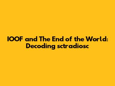 The Independent Order of Odd Fellows (IOOF) is a non-political and non-sectarian fraternal order founded in the 18th century. The organization is devoted to providing community service, promoting friendship, and offering aid to those in need. References to the IOOF often evoke a sense of tradition, community, and mutual support. When we encounter "IOOF" in a cryptic phrase, it may be linked to these values or the organization's activities. The phrase "the world was ending" is a common expression used to describe situations of extreme crisis, change, or disaster. It can be used literally to refer to apocalyptic scenarios or figuratively to describe significant personal or societal upheavals. In the context of our mystery phrase, it adds an element of urgency and drama, suggesting that whatever "sctradiosc" refers to is associated with a time of great stress or potential catastrophe. To decode the whole message, we need to analyze all parts to find out exactly what the author is talking about.