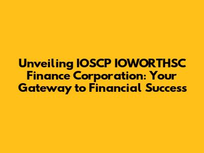 Unveiling IOSCP IOWORTHSC Finance Corporation: Your Gateway to Financial Success