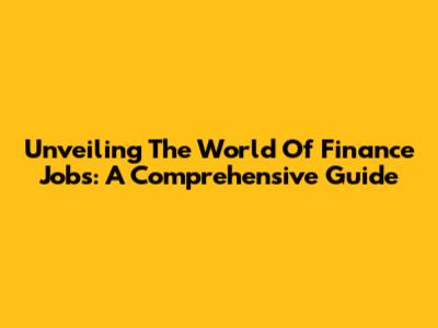 Unveiling The World Of Finance Jobs: A Comprehensive Guide