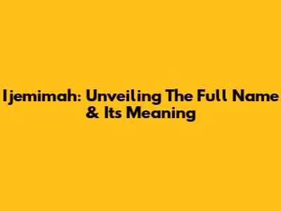 Ijemimah: Unveiling The Full Name & Its Meaning