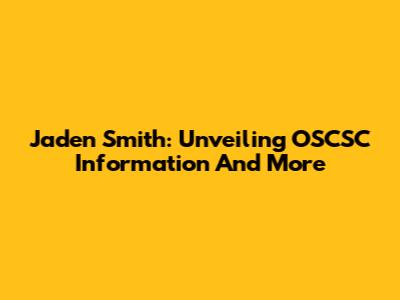 Jaden Smith: Unveiling OSCSC Information And More