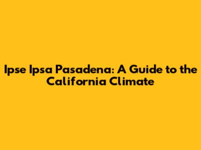 So, there you have it – a comprehensive guide to the climate of Ipse Ipsa Pasadena, California. Whether you're planning a visit or considering moving to this beautiful city, understanding the weather patterns can help you make the most of your time there. Enjoy the sunshine, mild temperatures, and stunning scenery that Pasadena has to offer!