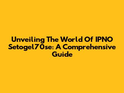 Unveiling The World Of IPNO Setogel70se: A Comprehensive Guide