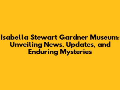 Hey art enthusiasts and history buffs! Ever heard of the Isabella Stewart Gardner Museum? If not, you're in for a treat. And if you have, well, buckle up because we're diving deep into the latest news, updates, and the enduring mysteries surrounding this iconic Boston institution. This isn't just a museum; it's a world brimming with art, history, and a touch of intrigue. Let's get started, shall we?