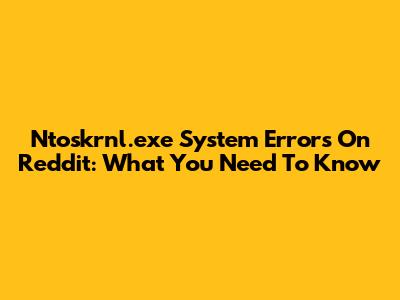 Ntoskrnl.exe System Errors On Reddit: What You Need To Know