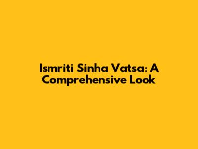 Hey everyone! Today, we're diving deep into the life and career of Ismriti Sinha Vatsa. You might be wondering, who is she? Well, let's get right to it and uncover everything you need to know about this fascinating individual. From her early life and education to her professional achievements and impact, we'll cover it all. So, grab your favorite drink, and let's explore the world of Ismriti Sinha Vatsa!
