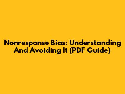 Nonresponse Bias: Understanding And Avoiding It (PDF Guide)